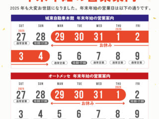 7/13城東新車館にてイベントを行うために、7/13・14両日店休日とさせていただきます。並びにオートメッセ店も13日は店休日となります。 オートメッセ店は、14日は当番制で営業スタッフ待機、整備鈑金はお休みさせていただ……